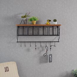 Επιτοίχια Κρεμάστρα Vintage με Ξύλινο Ράφι και Μεταλλικά Συρτάρια 64cm