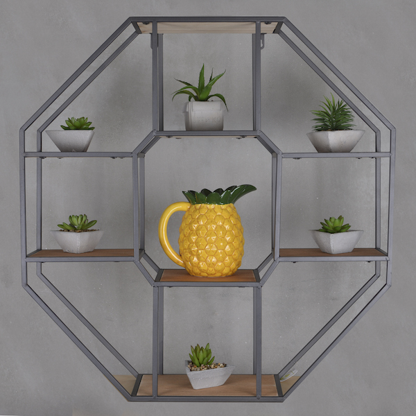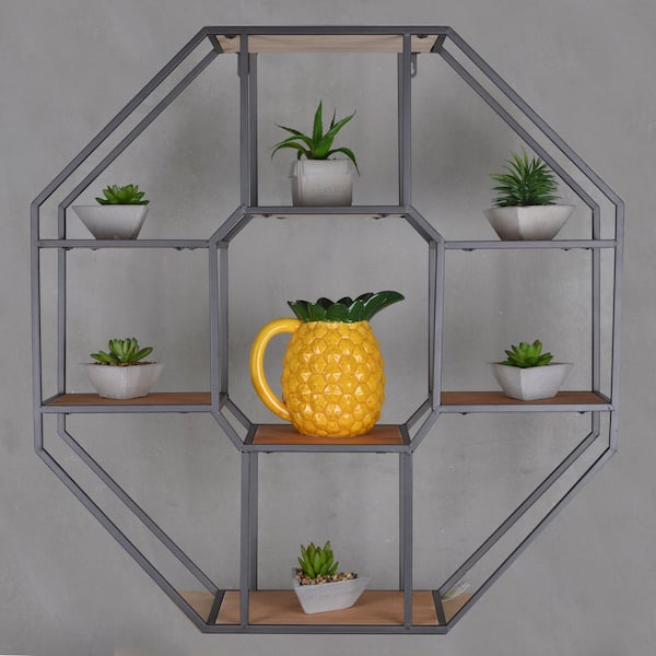 Επιτοίχια Πολυγωνική Ραφιέρα από Ξύλο και Μέταλλο 74x73x20cm