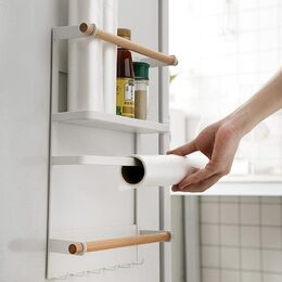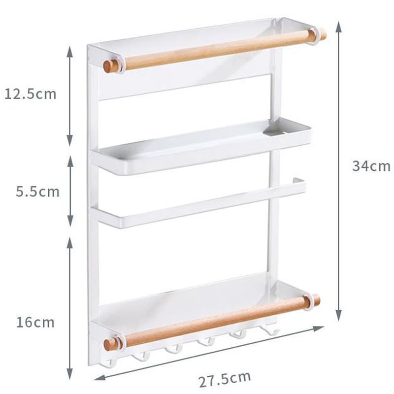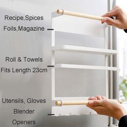 Η βάση αυτή διαθέτει ραφάκι για τρόφιμα, θέση για ρολά, όπως χαρτί κουζίνας, αλουμινόχαρτο, λαδόκολα κλπ και 6 γάντζους για να κρεμάτε πετσέτες και κουζινικά σκεύη.