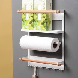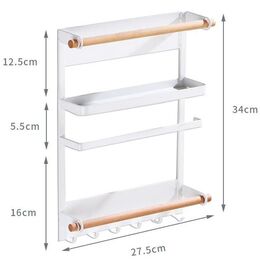 Η βάση αυτή διαθέτει ραφάκι για τρόφιμα, θέση για ρολά, όπως χαρτί κουζίνας, αλουμινόχαρτο, λαδόκολα κλπ και 6 γάντζους για να κρεμάτε πετσέτες και κουζινικά σκεύη.