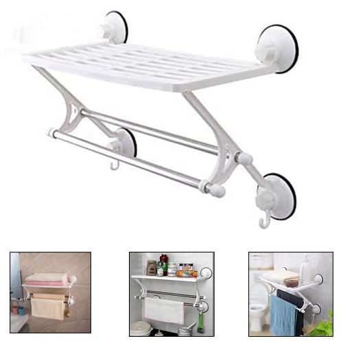 Επιτοίχια Βάση Οργάνωσης - Ραφιέρα Μπάνιου & Κουζίνας με Ράφι - Πετσετοκρεμάστρα & Βεντούζες - Λευκή