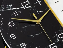 Μινιμαλιστικό ρολόι τοίχου με μαρμάρινες λεπτομέριες. Η εντελώς αθόρυβη λειτουργία του όχι μόνο σας προσφέρει έναν ήσυχο χώρο ύπνου και μελέτης, αλλά δημιουργεί επίσης μια ήσυχη και άνετη ατμόσφαιρα.