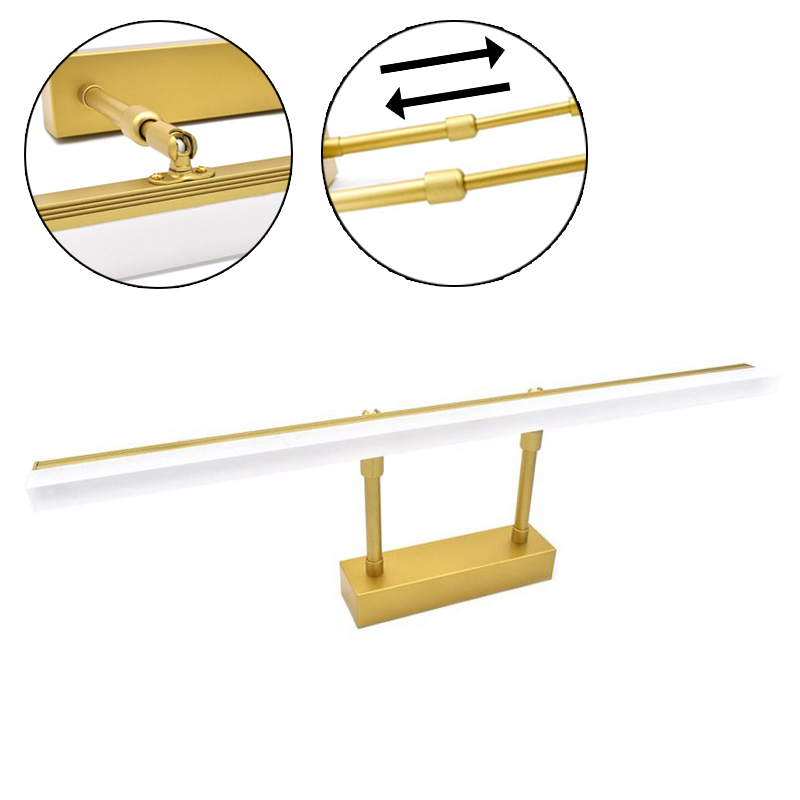 Επιτοίχιο Χρυσό LED 12W Φωτιστικό - Ράγα 50 cm με Τηλεσκοπικούς Βραχίονες - Ελευθερία Κίνησης 180º - Λευκό Φως με 120º Γωνία Προβολής OEM