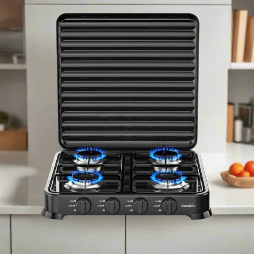 Επιτραπέζια Τετραπλή Εστία Υγραερίου Hoomei με 4 Εστίες 2.2KW και Καπάκι Προστασίας