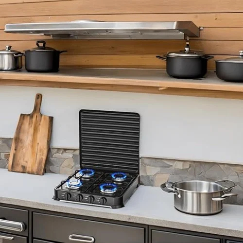Η Επιτραπέζια Τετραπλή Εστία Υγραερίου Hoomei προσφέρει ισχυρή απόδοση και άνεση στο μαγείρεμα, ιδανική για εξωτερικούς χώρους, κάμπινγκ ή εξοχικά.