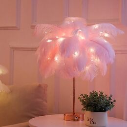 Επιτραπέζιο Διακοσμητικό Ροζ LED Φωτιστικό με Φτερά & Λαμπάκια με Μπαταρίες 35x48x10cm