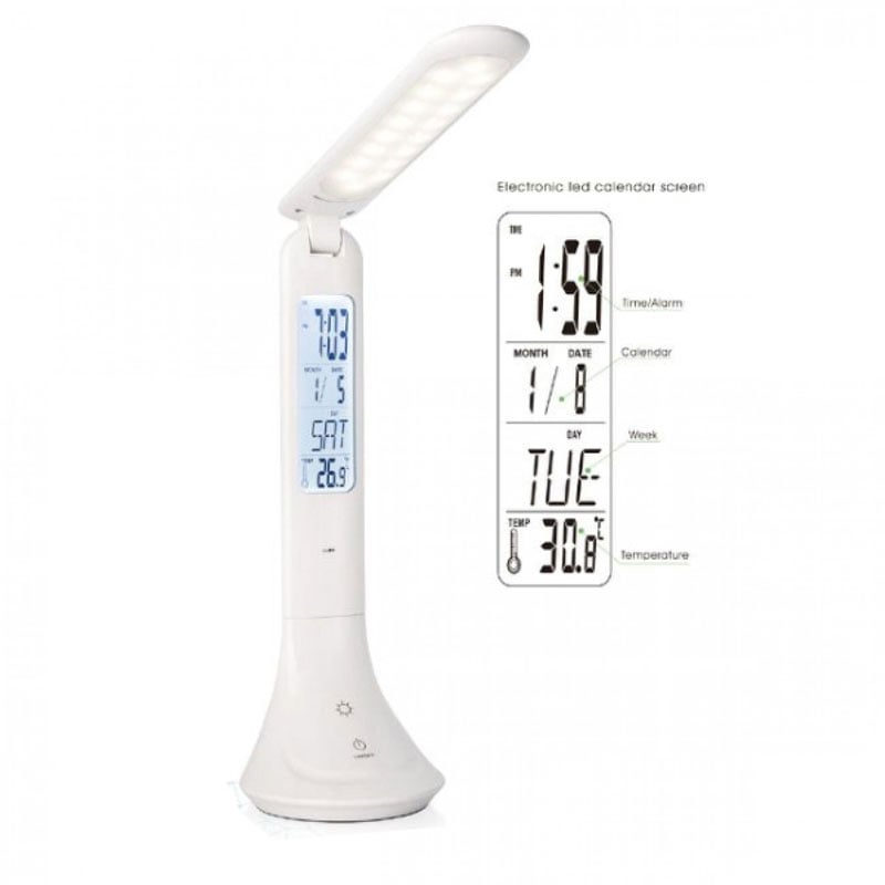 Επιτραπέζιο Επαναφορτιζόμενο Φωτιστικό Γραφείου Led με Ρολόι - Ξυπνητήρι - Ημερολόγιο 4w