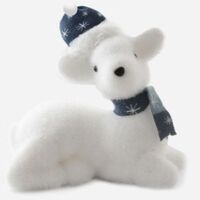 Γιορτινό διακοσμητικό ελαφάκι 25 cm από foam με flocking επίστρωση, μπλε σκούφο και κασκόλ. Ιδανικό για σαλόνι, γραφείο ή κάτω από το δέντρο. Προσθέτει χειμωνιάτικη θαλπωρή και στυλ στη χριστουγεννιάτικη διακόσμηση.