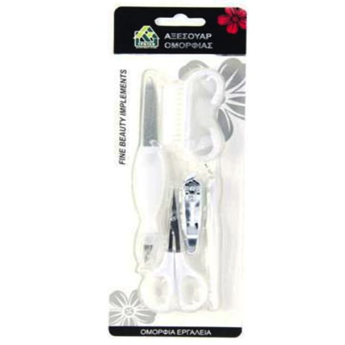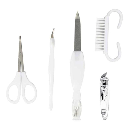 Ένα απίθανο σετ 5 τεμαχίων με διάφορα εργαλεία περιποίησης νυχιών, το οποίο περιλαμβάνει ψαλιδάκι, λίμα, σπρωχτήρι, βούρτσα και νυχοκόπτη. Εργονομικά και ευκολόχρηστα, ιδανικά για οικιακή και επαγγελματική χρήση. Ψαλιδάκι ανθεκτικό και ανοξείδωτο, ιδανικό για μανικιούρ και πεντικιούρ, κατάλληλο για χρήση σε νύχια και παρανυχίδες. Λίμα από ανοξείδωτο ατσάλι με μυτερή μύτη κατάλληλη για τον σχηματισμό των νυχιών σας. Σπρωχτήρι με κυρτή άκρη ειδικά σχεδιασμένο για να απομακρύνει το νύχι από το δέρμα, καθώς και τις παρανυχίδες. Βουρτσάκι που χρησιμοποιείται για να απομακρύνετε τη σκόνη από τα νύχια, τα υπολείμματα, τον εξοπλισμό, ή το τραπέζι. Νυχοκόπτης με λεπίδα από ανοξείδωτο ατσάλι.