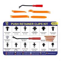 Σετ πλαστικά clips αυτοκινήτου με 229 τεμάχια, εξολκέα και 4 εργαλεία μετακίνησης.