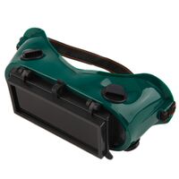 Μάσκα για ασφαλή εργασία με ηλεκτροκόλληση, με τέσσερα σημεία για αερισμό. Τα σκούρα γυαλιά ανασηκώνονται για να δείτε κάτι χωρίς να χρειάζεται να βγάζετε τη μάσκα.