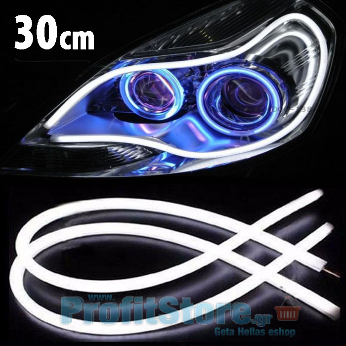 Εύκαμπτος Διακοσμητικός Σωλήνας για Φανάρι 30 cm - Φώτα Ημέρας Αυτοκινήτου - 6000Κ Ψυχρό Λευκό - Σετ 2 τμχ