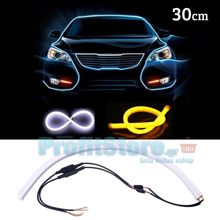 Εύκαμπτος Διακοσμητικός Σωλήνας για Φανάρι με Φλας - Φώτα Ημέρας Αυτοκινήτου - 6000Κ Ψυχρό Λευκό 30 cm - Σετ 2 τμχ