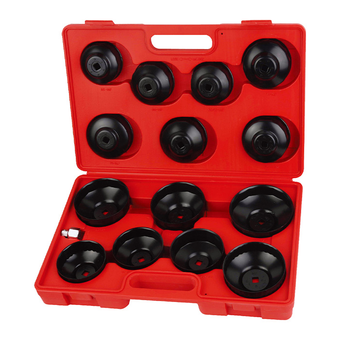 Το σετ περιλαμβάνει 14 κούπες διαφορετικών μεγεθών, επιτρέποντας την προσαρμογή σε μια ευρεία γκάμα φίλτρων λαδιού.