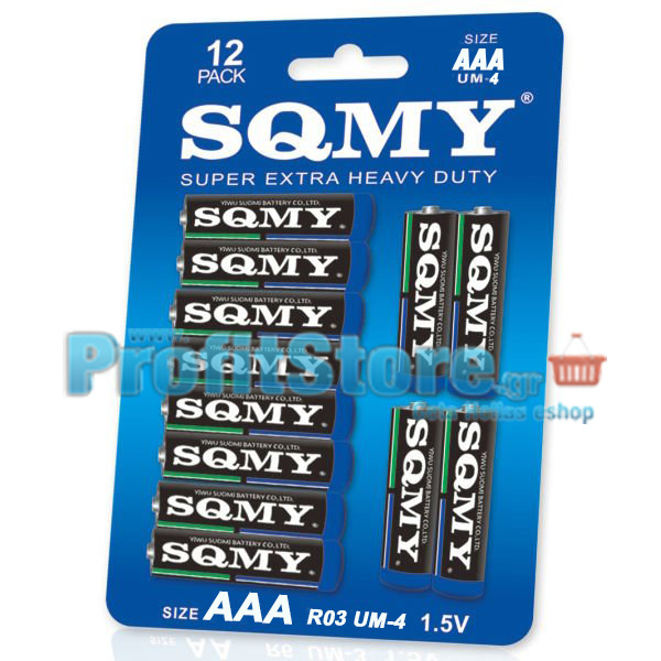 Extra Heavy Duty AAA Μπαταρίες, 1.5V, SQMY, 12 τεμάχια