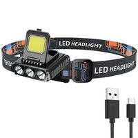Πολυχρηστικός 5 σε 1 COB LED φακός κεφαλής, αδιάβροχος και επαναφορτιζόμενος μέσω USB, με αισθητήρα κίνησης και ρυθμιζόμενο λουράκι. Ιδανικός για κάμπινγκ, ποδηλασία, ψάρεμα, πεζοπορία και νυχτερινή εργασία.