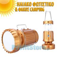 Μεγάλος επαναφορτιζόμενος πτυσσόμενος φακός - φωτιστικό - φανάρι. Ιδανικός για τους λάτρες του κάμπιγκ, των εκδρομές και των εξορμήσεων στην εξοχή και την φύση! Διαθέτει usb έξοδο φόρτισης Power bank, φακό, φωτιστικό - φανάρι, ηλιακό πάνελ φόρτισης, επαναοφορτιζόμενη μπαταρία χερούλια και κρεμάσματος.