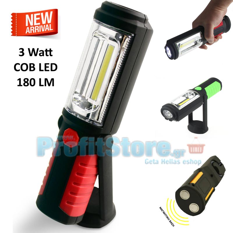 Φακός Εργασίας COB LED 3W - 360o με Μαγνήτη και Γάντζο Στήριξης