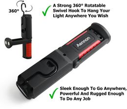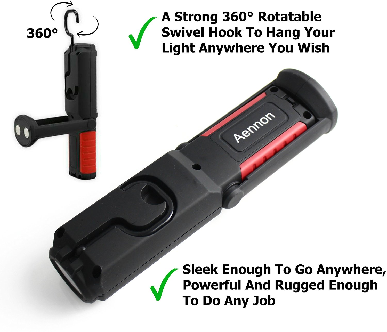- Διαθέτει ισχυρό διπλό μαγνήτη στο πίσω μέρος και πτυσσόμενο γάντζο, για να τον στηρίζετε σε κάποια μεταλλική επιφάνεια ή να τον κρεμάτε όταν θέλετε να κάνετε κάποια εργασία έχοντας τα χέρια σας ελεύθερα ενώ περιστρέφεται κατά 360o για να φωτίζει και τις πιο δύσκολες γωνίες.