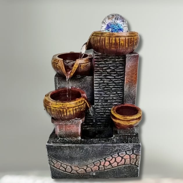 Feng Shui Διακοσμητικό Συντριβάνι με Κιούπια & Κρυστάλλινη Σφαίρα