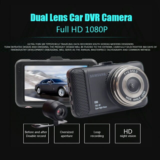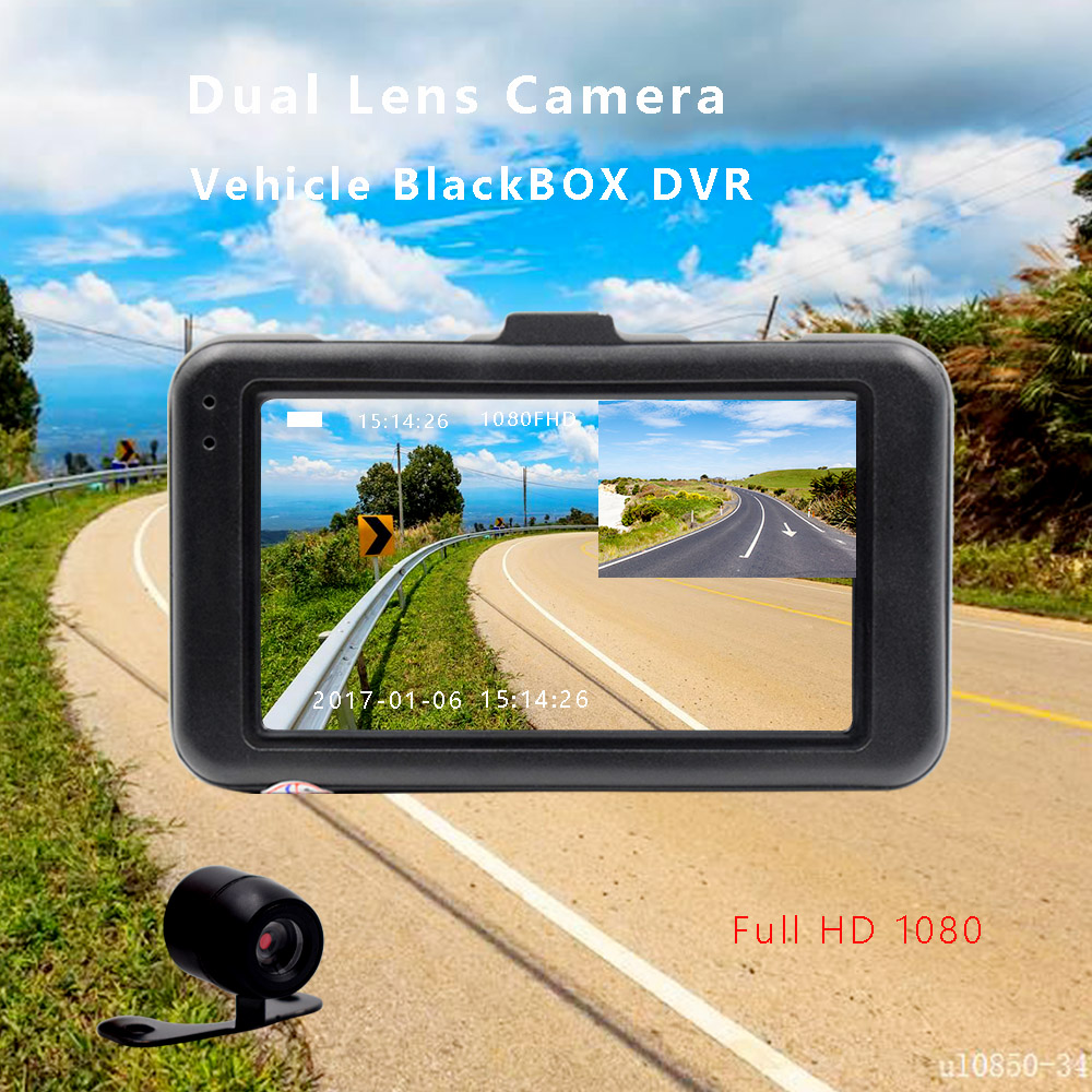 FHD Κάμερα - Καταγραφικό 1080p Αυτοκινήτου με Κάμερα Οπισθοπορείας, Ανιχνευτή Κίνησης, G-Sensor, Oθόνη 3, Ευρυγώνιο Φακό 170ᵒ, Loop Recording