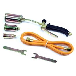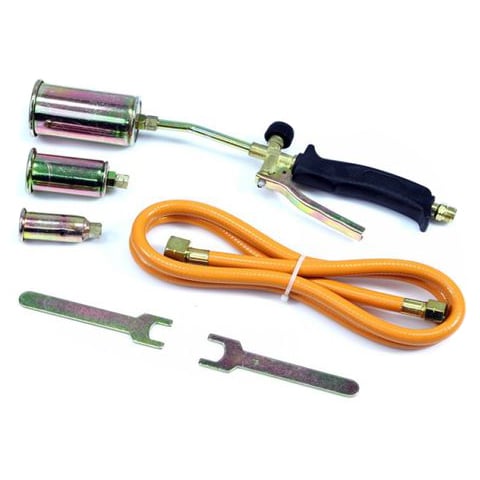 Είναι εξοπλισμένο με 3 ακροφύσια (διαμέτρου 25, 35 & 50 mm), εύκαμπτο σωλήνα 1.5 m, σκανδάλη, βαλβίδα ελέγχου ροής αερίου και 2 κλειδιά.