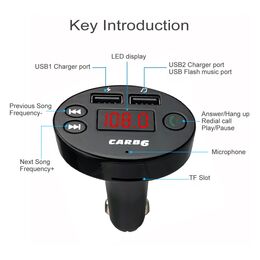 Fm Transmitter Φορτιστής Αυτοκινήτου 2 x USB,SD Bluetooth Handsfree Mp3 Player με Μικρόφωνο & AUX είσοδο - Car FM Modulator