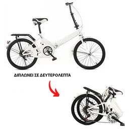 Foldy Bike Αεροδυναμικό Σπαστό Ποδήλατο με Φρένα Μπρός, Πίσω, Αναδιπλούμενο Σκελετό & Τιμόνι, Ανακλαστήρα Πίσω & Δυνατότητα Τοποθέτησης Καλαθιού - Λευκό