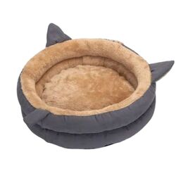 Φωλιά Γάτας από Απαλό Χνουδωτό Ύφασμα 47 x 47 x 13cm - Γκρι με Καφέ Nobleza