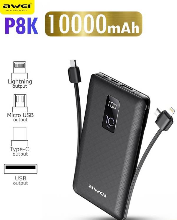 Τώρα με την AWEI Power Bank P8K με χωρητικότητα 10000mAh, θα έχετε πάντα τη δύναμη να φορτίζετε κινητά τηλέφωνα, κάμερες, GPS, MP3 / MP4, Tablets και άλλες ηλεκτρικές συσκευές όπου κι αν βρίσκεστε.