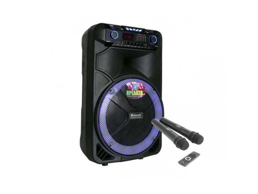 Φορητό ασύρματο ηχείο 15'' με λειτουργία σύνδεσης Bluetooth και υποδοχή για κάρτες TF και SD. Ένα πλήρες δυνατό μουσικό σύστημα που θα καλύψει όλες τις ανάγκες σας δίνοντας σας ένα επαγγελματικό αποτέλεσμα σαν να βρίσκεστε σε στούντιο! Δυνατό ηχείο με ενσωματωμένο ενισχυτή 30Watt, woofer 15’’, USB/SD Player και ασύρματο μικρόφωνο με πλήρη λειτουργία καραόκε.