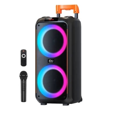 - Λειτουργίες: FM radio, TWS σύνδεση, έλεγχος Echo/Bass/Treble, ασύρματο μικρόφωνο, τηλεχειριστήριο