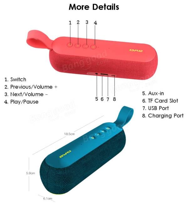 Awei Y230 φορητό Bluetooth ηχείο με υποδοχή TF Card Audio & ενσωματωμένο μικρόφωνο, παράγει ποιοτικό ήχο για το μέγεθός του, που θα εκπλαγείς! Είναι ισχυρό, ανθεκτικό και θα σου εξασφαλίσει πολλές ώρες μουσικής!Ασύρματη σύνδεση!