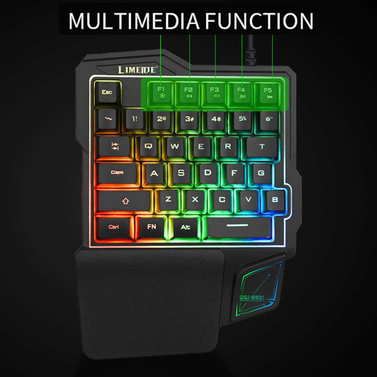 Φορητό Gaming Πληκτρολόγιο RGB One Handed USB με Πολύχρωμο Φωτισμό LED - Single Hand Keyboard