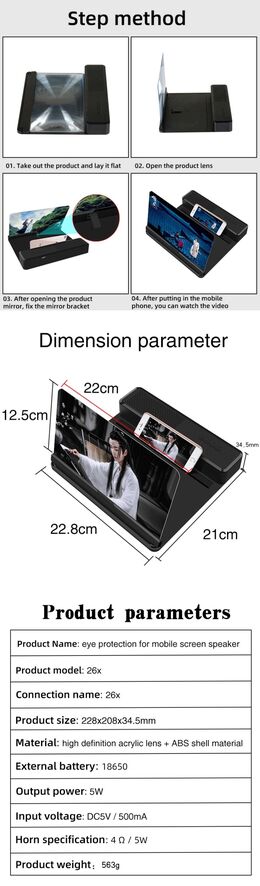 Χρησιμοποιήστε τον μαγικό μεγεθυντικό φακό 3D για κινητά με ηχεία bluetooth και θα βιώσετε την εικονική πραγματικότητα του θεάματος και του ήχου να εξελίσσεται μπροστά σας ζωντανά, θα έχετε την αίσθηση ότι τα διαδραματιζόμενα θα ξεπηδήσουν από την εικόνα και θα τα ζήσετε στην πραγματικότητα!