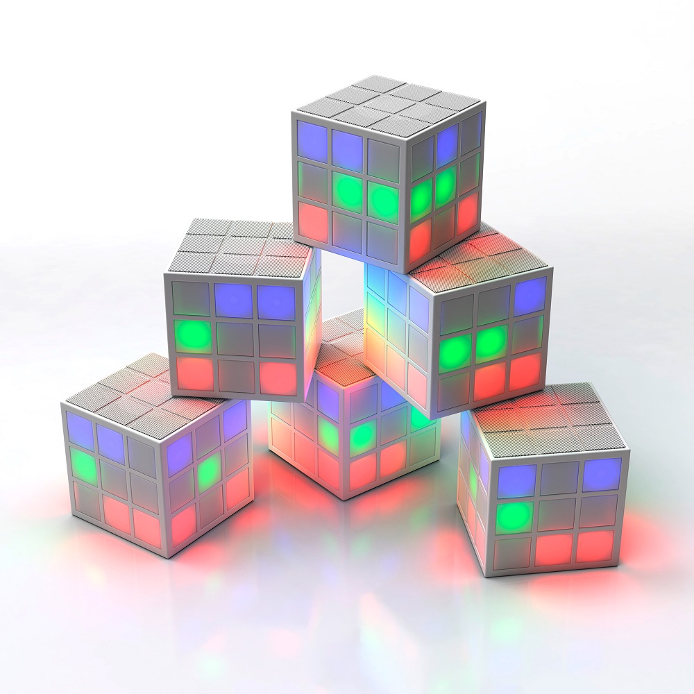 Το ηχείο Rubik’s SoundCube LED είναι ένα φορητό ηχείο Bluetooth το οποίο αναβοσβήνει στο ρυθμό της μουσικής! Επιλέγοντας έναν από τους πέντε διαφορετικούς τρόπους απεικόνισης τα 36 LED διαφορετικών αποχρώσεων που διαθέτει παρέχουν ένα animation light show 360 ° για να ξεκινήσετε το πάρτι!
