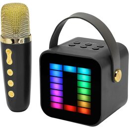 Φορητό Ηχείο Ηχοσύστημα Bluetooth Καραόκε με Ασύρματο Μικρόφωνο Bluetooth Λειτουργία Εγγραφής Ήχου Μαύρο