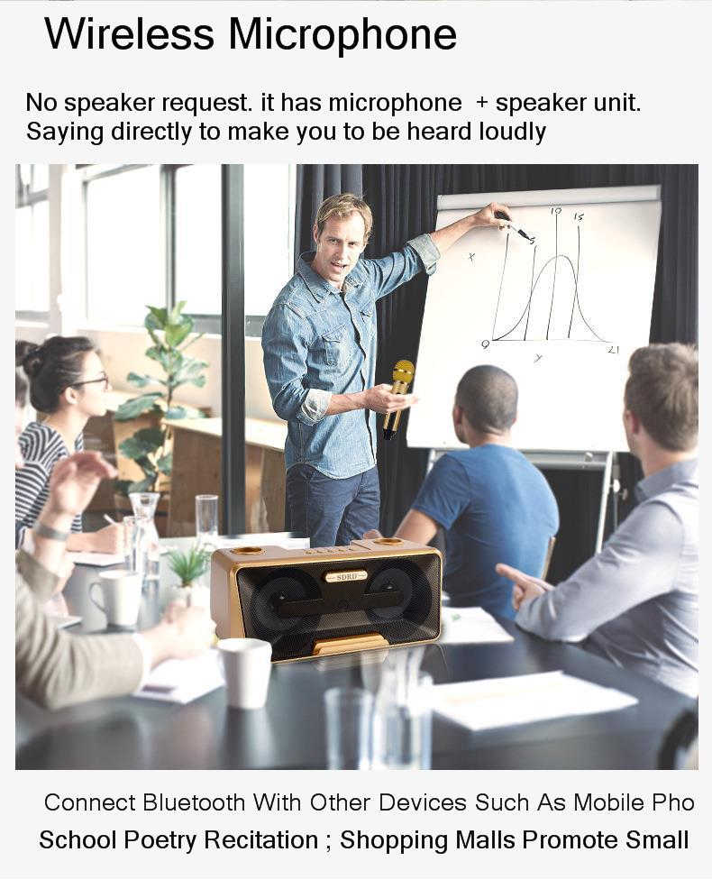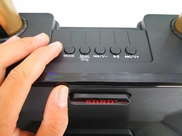 Λειτουργεί ως σύστημα ΚΑΡΑΟΚΕ κάνοντας μίξη κάθε πηγής ήχου ( SD card, USB, line in, bluetooth ) με τα 2 δυναμικά μικρόφωνα που περιλαμβάνει και αναπαράγει δυνατά και καθαρά μουσική και φωνητικά, ενώ διαθέτει και ειδική θέση για το κινητό σας στο μπροστινό μέρος.