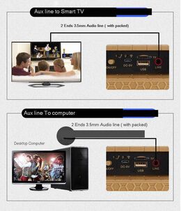 Συνδέεται ενσύρματα με κάθε συσκευή που διαθέτει έξοδο ήχου όπως τηλεόραση, DVD player, mp3 player, κινητά τηλέφωνα και smartphones, Ipod, Ipad, tablets και ηλεκτρονικούς υπολογιστές και χρησιμεύει σαν εξωτερικό ηχείο.