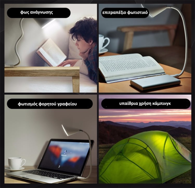 Το φωτιστικό χρησιμοποιείται ευρέως για την ανάγνωση, τη γραφή, την εργασία γραφείου, για ταξίδια ή οποιεσδήποτε άλλες δραστηριότητες !