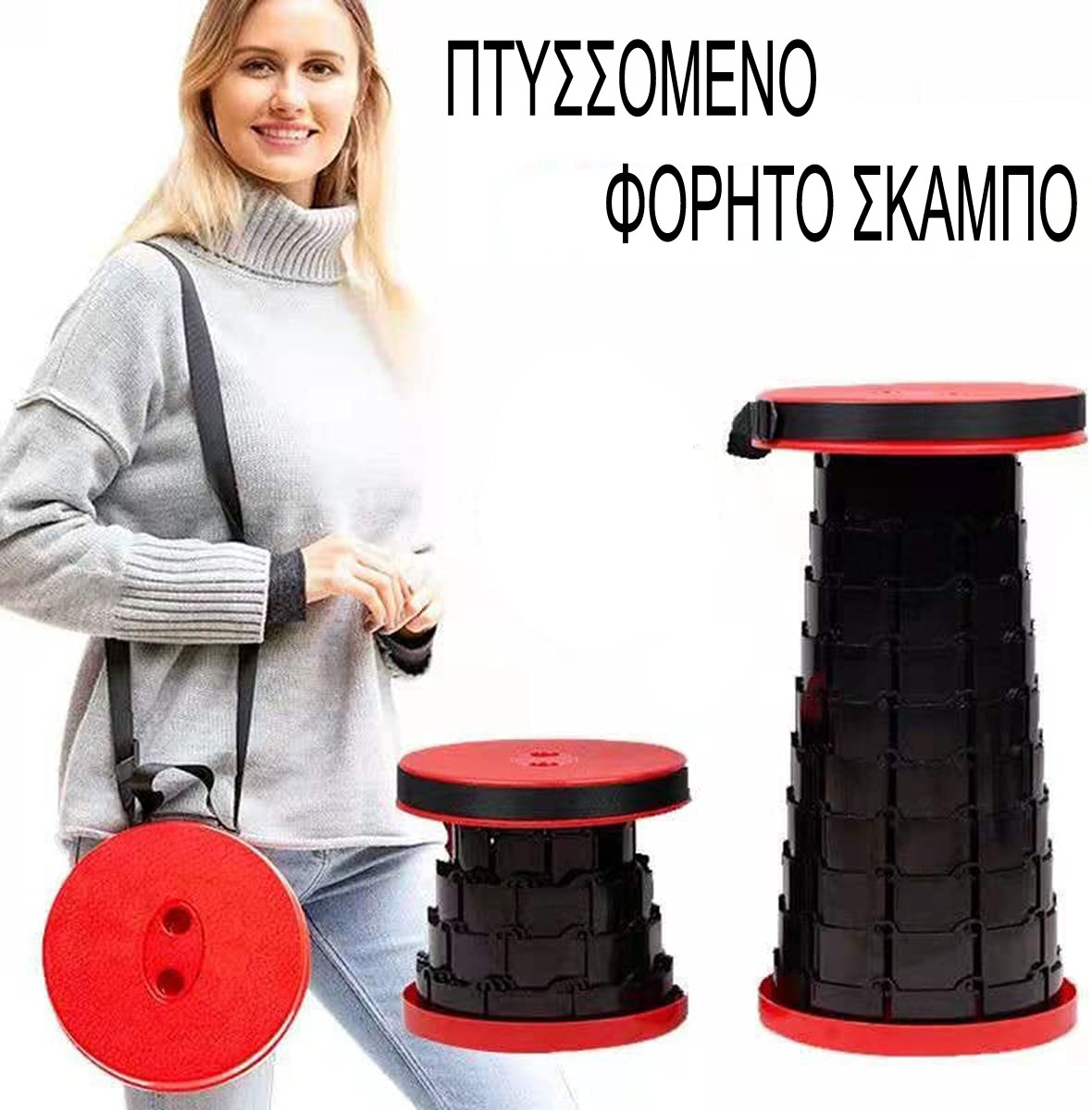 Ειδικά σχεδιασμένο πτυσσόμενο σκαμπό για να μπορείτε να το έχετε μαζί σας και να μπορείτε να καθίσετε όπου και αν είστε!