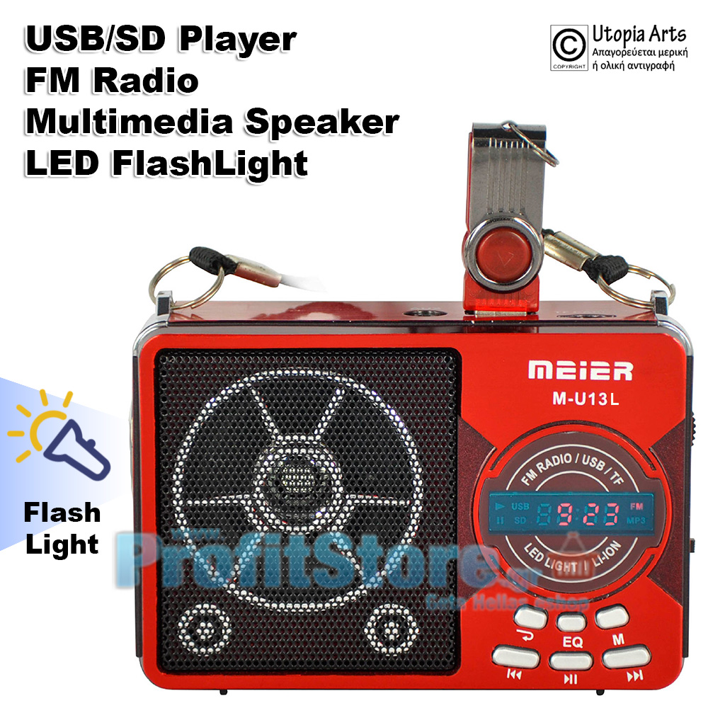 Φορητό USB,SD Mp3 Player Multimedia Speaker, FM Radio & Φακός LED MEIER M-U13L