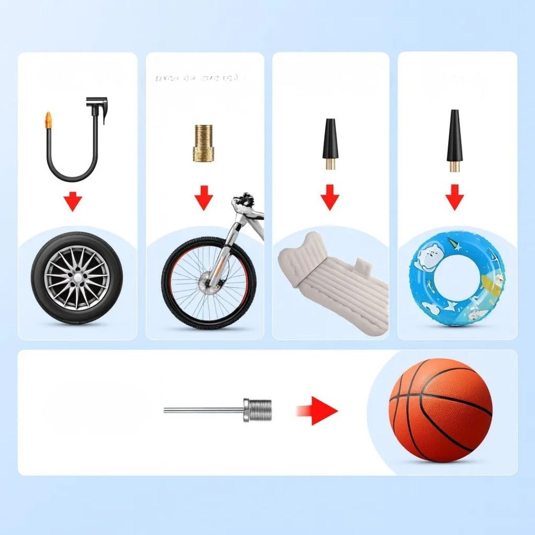 • Επιπλέον χρήση: φούσκωμα ελαστικών αυτοκινήτου και ποδηλάτου, μπάλες, φουσκωτά στρώματα και σωσίβια
