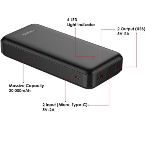 Φορητός Φορτιστής Powerbank - Μπαταρία Φόρτισης Κινητών 20000mAh Veger Μαύρο