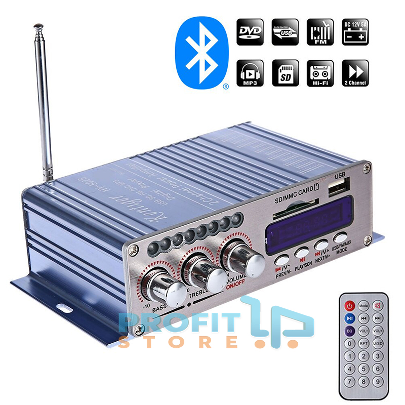 Φορητός Hi-Fi Bluetooth Στέρεο Ραδιοενισχυτής 40W USB, SD, FM MP3 12V - Ενισχυτής Αυτοκινήτου με Τηλεχειριστήριο - HY-502S OEM Μπλε