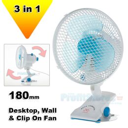 Εξαιρετικής λειτουργικότητας φορητός ανεμιστήρας 18cm, που μπορεί να λειτουργήσει ως επιτραπέζιος, επιτοίχιος ή να στερεωθεί με το ισχυρό κλιπ σε κάθε επιφάνεια.