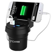 Αυτό το προϊόν είναι βάση κινητού ενώ ταυτόχρονα διαθέτει, δύο εξόδους USB με LED για φόρτιση των συσκευών σας, όπως GPS, ipad, ή του κινητού σας, και δύο θύρες για αναπτήρα αυτοκινήτου! Όλα αυτά σε μικρό μέγεθος που θα μπορούσε με ευκολία να χωρέσει στην ποτηροθήκη σας!