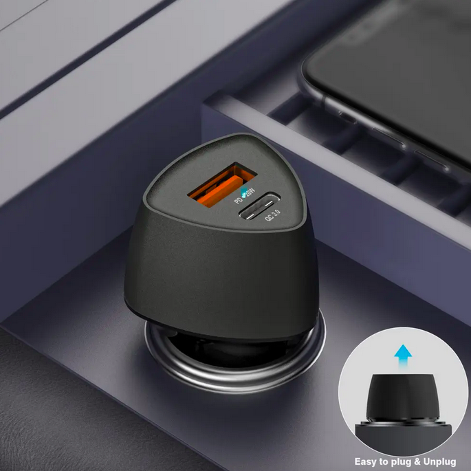 Φορτιστής Αυτοκινήτου Fast Charge με Δύο Εξόδους (USB & Type C) 38W Μαύρο