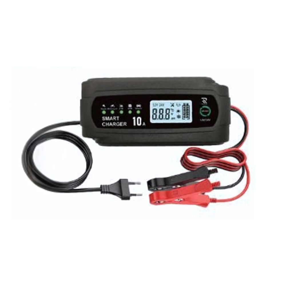 Ο φορτιστής μπαταρίας αυτοκινήτου 12–24V 10A έχει σχεδιαστεί για επαναφόρτιση μπαταριών αυτοκινήτων και επαγγελματικών οχημάτων, προσφέροντας ασφαλή και αποτελεσματική φόρτιση σε μπαταρίες 12V και 24V.