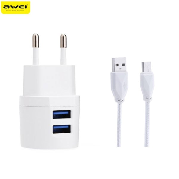 Ο υψηλής ποιότητας φορτιστής, για γρήγορη φόρτιση, Awei με δύο εξόδους USB και καλώδιο micro USB. Είναι ένα απαραίτητο σετ για τον καθένα, καθώς μπορείτε να φορτίζετε δύο συσκευές ταυτοχρόνως και φυσικά... σε πολύ χαμηλή τιμή!